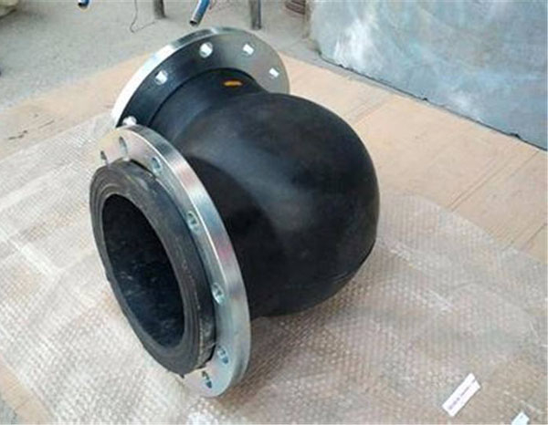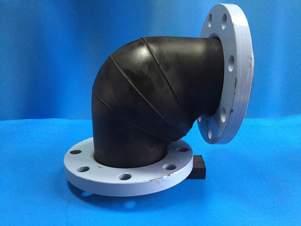 KWT型90度橡膠彎頭系內(nèi)膠層、增強層、外膠層,經(jīng)高溫模壓硫化成型的橡膠彎球頭和松套金屬法蘭組成??汕鷵舷鹉z彎頭耐壓高、彈性好,性能優(yōu)越,使用壽命長,位移補償量大、減震降噪效果明顯,安裝維修方便,便于金屬管路的轉向施工,是目前廣泛應用的新型的管路柔性連接產(chǎn)品。